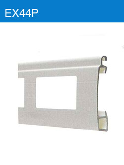 Láminas EX44, EX55, EX61, EX77 y EX78: por su resistencia son utilizadas para instalaciones exteriores ya que son fabricadas bajo un proceso de extrusión y luego sometidas a un proceso de pintura en polvo al horno. Nuestros clientes pueden elegir entre una gran variedad de colores. Contamos con existencia permanente de los colores blanco y marrón.